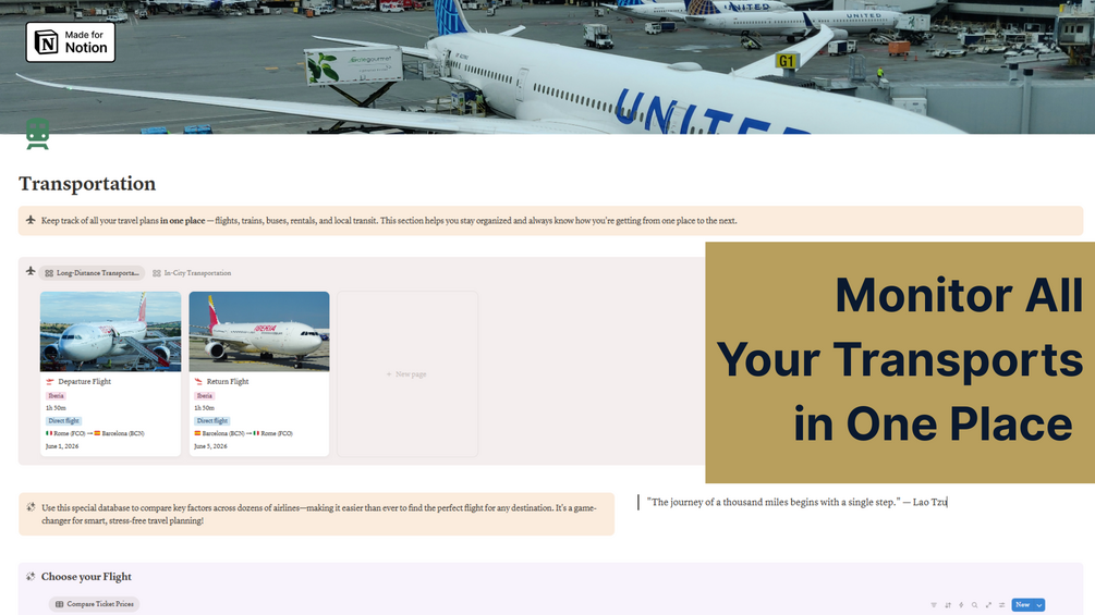 Stop juggling spreadsheets, sticky notes, and endless tabs—organize your entire trip in one beautifully designed Notion template!