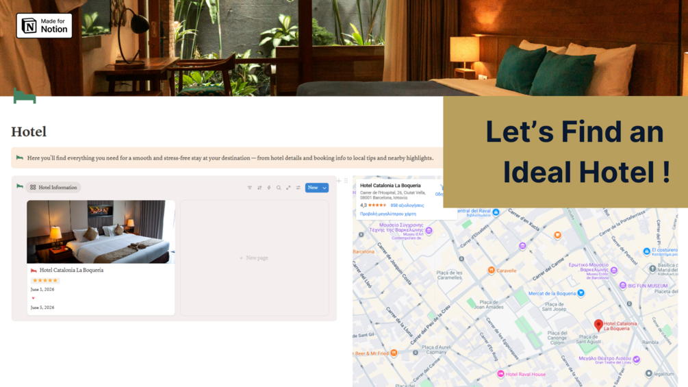 3. Hotel – Store booking details, check-in info, and all your accommodations.