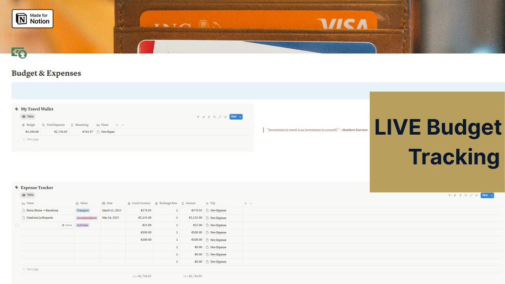 Stop juggling spreadsheets, sticky notes, and endless tabs—organize your entire trip in one beautifully designed Notion template!